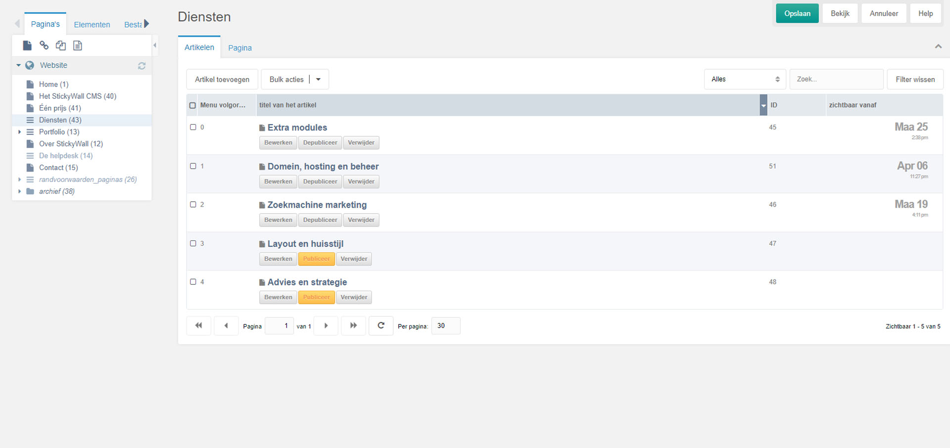 Het STICKYWALL CMS heeft in de basisversie de volgende modules.